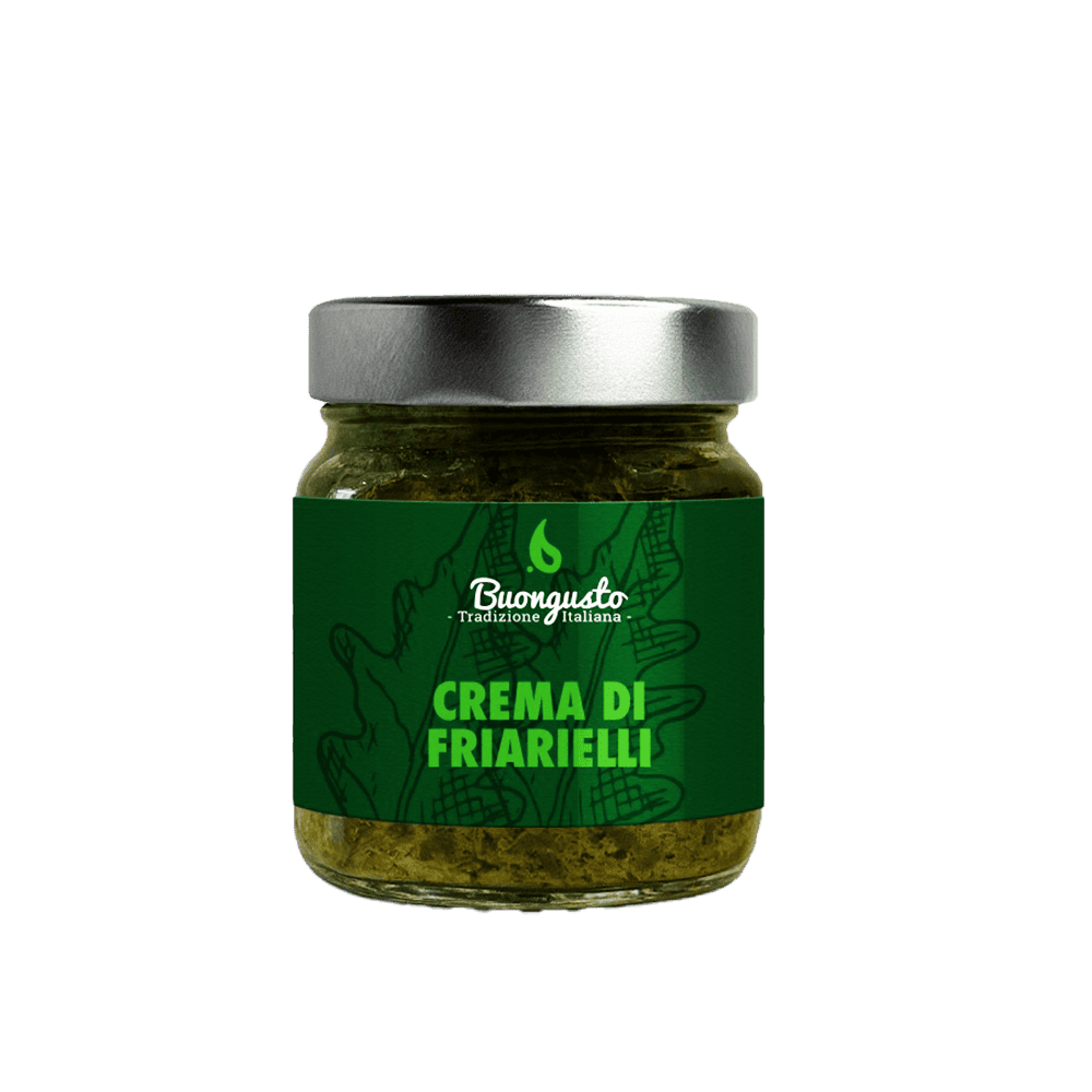 Friarielli cream, made only with friarielli (broccoli rabe), sunflower seed oil, salt, garlic, and peppers, is perfect for garnishing dishes and enriching dough.